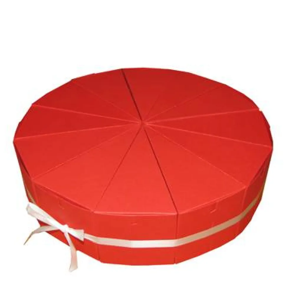 Eine originelle Geschenkidee: In dieser als zweistöckige Torte zusammen gestellten Verpackung können hervorragend Süssigkeiten oder kleine Gegenstände verschenkt werden. Beide Stockwerke sind mit einer hübschen Schleife versehen. In vielen verschiedenen Farben erhältlich.