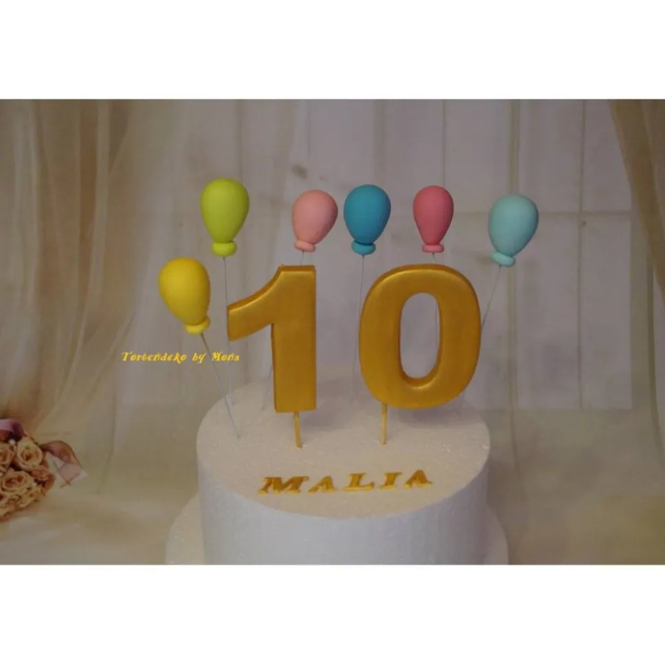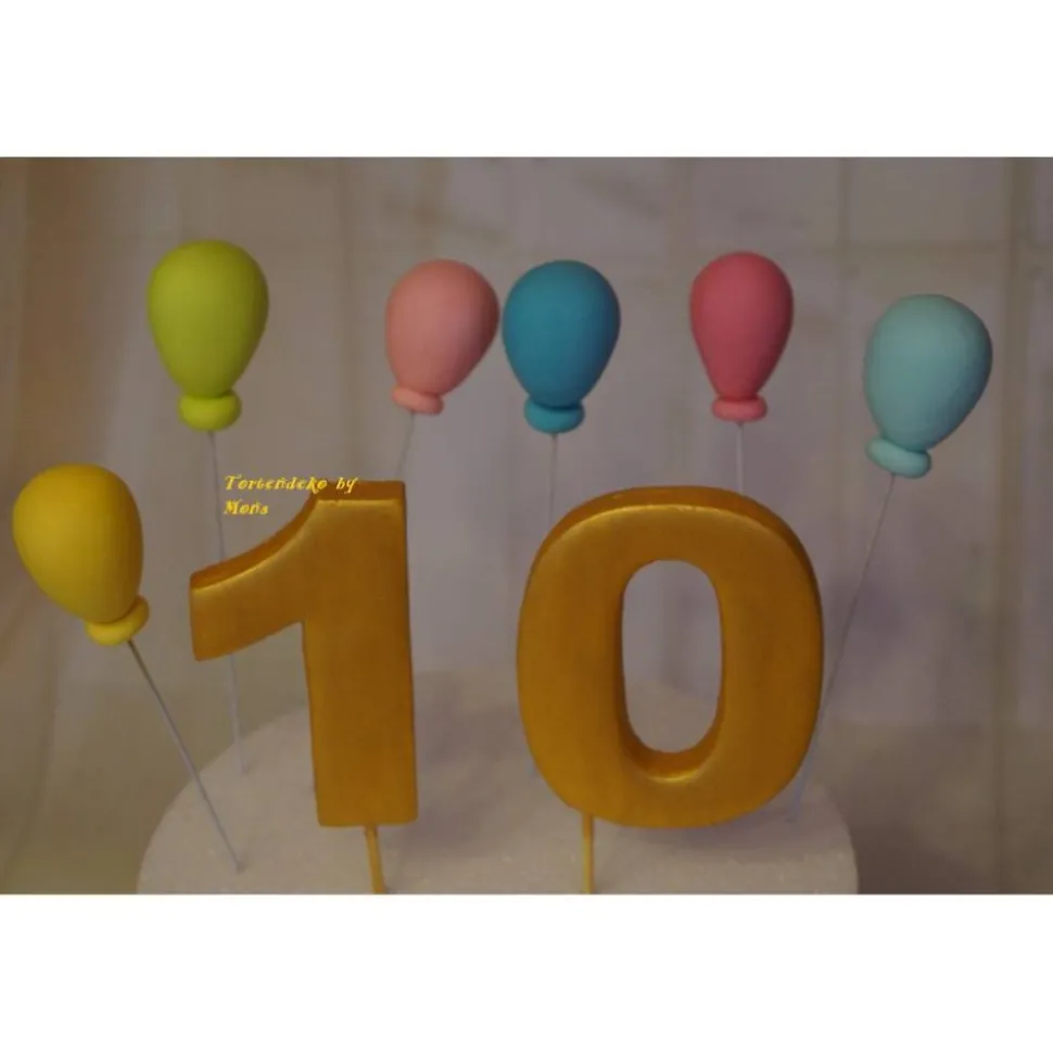 Eine Geburtstagzahl in golg mit 6 Luftballons und Namen . Farben können gerne geändert werden.
