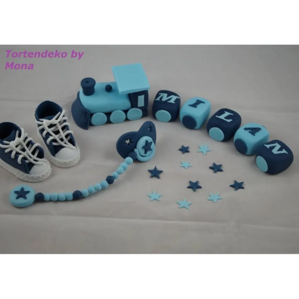 In dieser Auktion bekommt ihr eine Tortendeko für die Taufe, Geburt, Geburtstag. Taufdeko .Der Preis gilt für alles was Sie auf den Bildern sehen.Preis gilt bei der Lok für einen Namen von 5 Buchstaben, jeder weitere Anhänger mit Buchstabe 0,80 cent . Andere Farben sind möglich und auch für Mädchen.