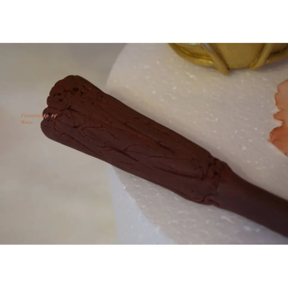 Die Figuren sind aus Fondant (Zuckermasse) mit Lebensmittelfarben hergestellt und sind durch Zugabe der Cellulose hart.