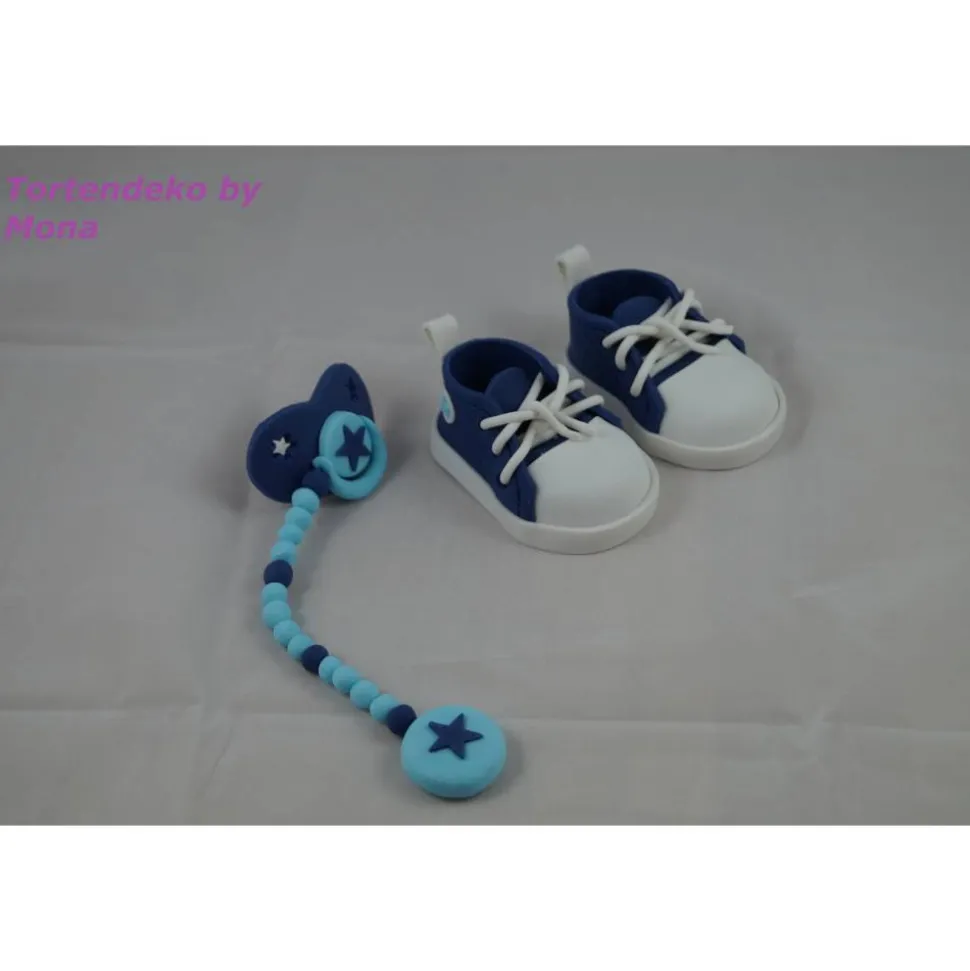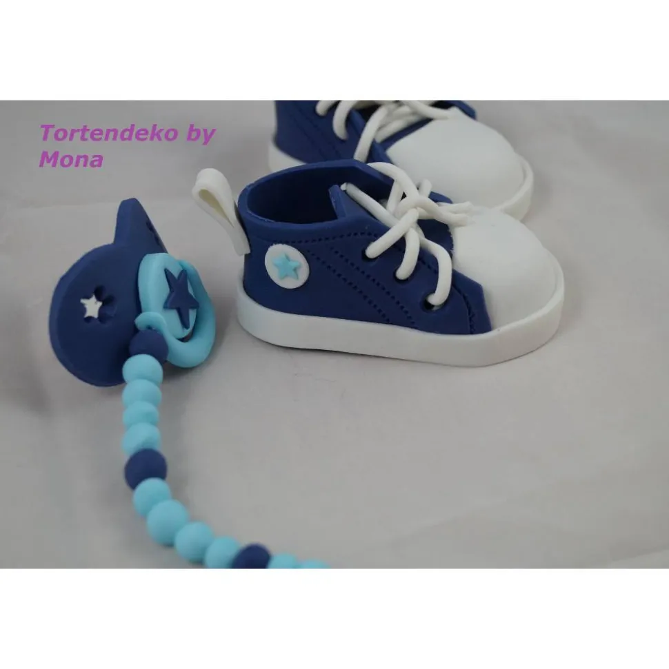 Eine Tortendeko für die Geburt, Geburtstag, Taufe ein Paar Schuhe mit Schnuller , alles was im Angebot zu sehen ist gehört zum Angebot