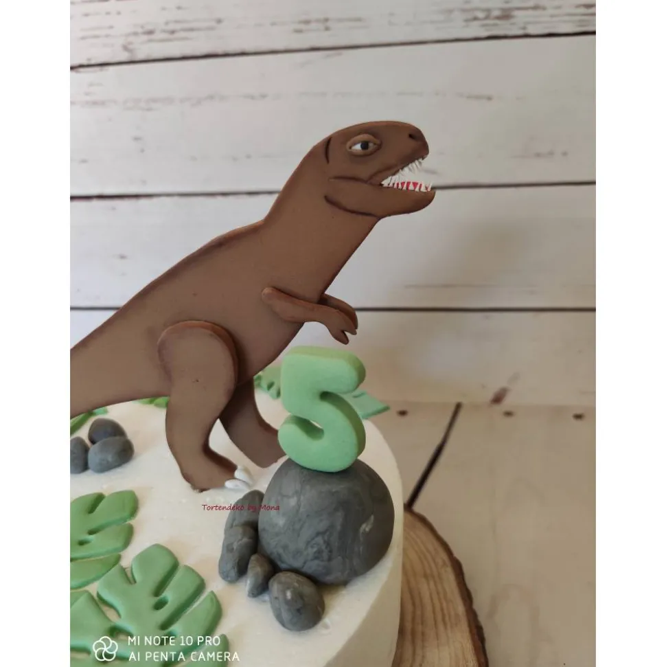 Hier bekommt ihr für eure Dino Fan´s eine Deko für die Torte zum Geburtstag. Da werden die Augen der kleinen Jungs oder auch Mädchen funkeln und leuchten. Der T-Rex ist 15 cm hoch. Zum Komplett Angebot zählt alles was auf den Bildern zusehen ist , der Tortendummy zählt nicht dazu .