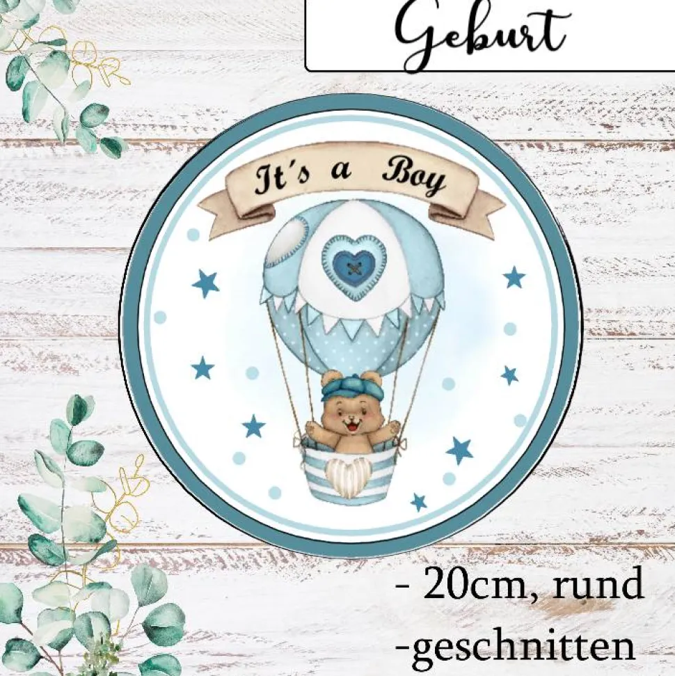 Der schöne Tortenaufleger ist ideal, um die Geburt eines Kindes zu feiern. Der Aufleger wird bereits ausgeschnitten und kann sofort dekoriert werden.
