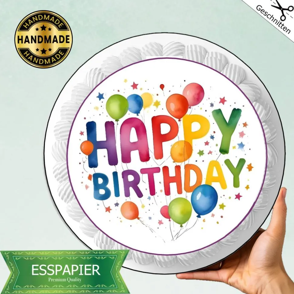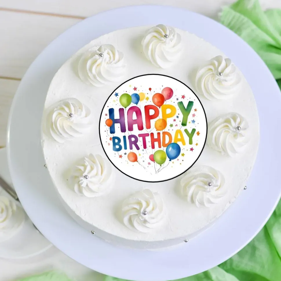 Verschönere jeden Geburtstag mit unserem fröhlichen und kreativen Tortenaufleger Happy Birthday! Lass die Torte zum Highlight der Party werden und zaubere ein Lächeln auf das Geburtstagskind. Mit Farbe und Spaß wird jeder Geburtstag zu etwas Besonderem.