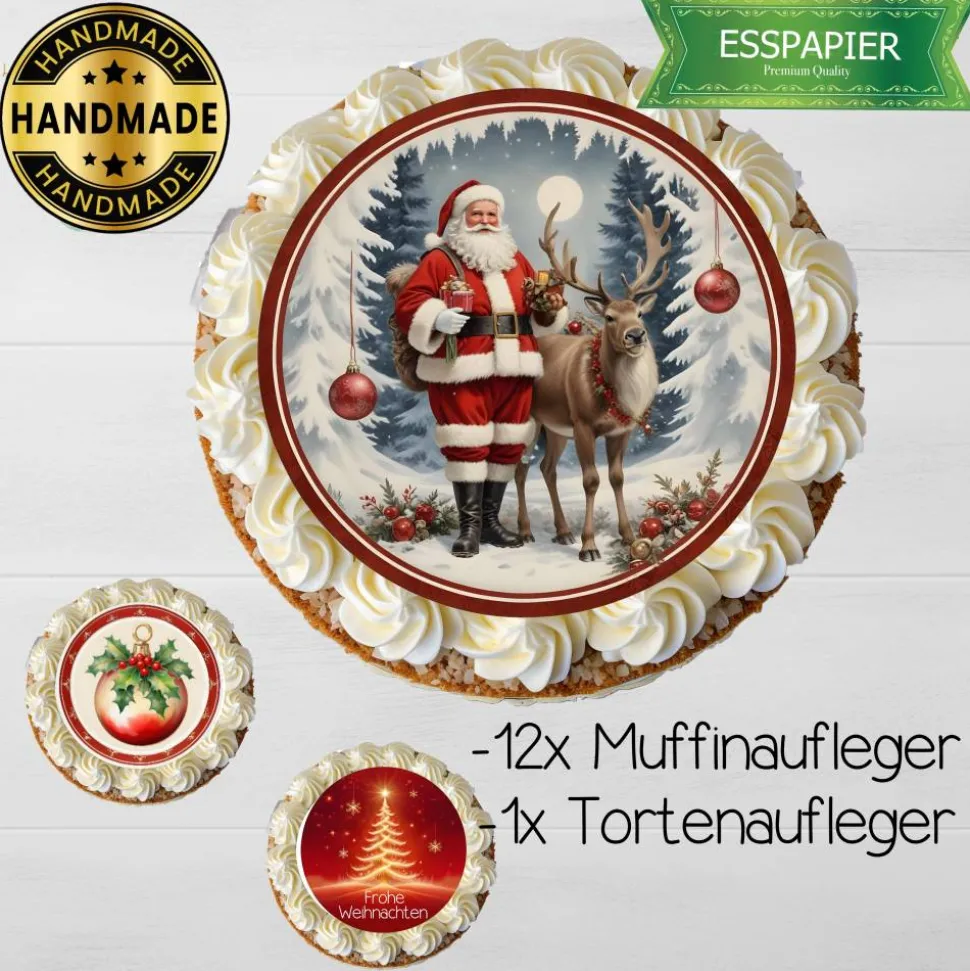 Verleihen Sie Ihren weihnachtlichen Torten, Lebkuchen und Muffins mit unserem Tortenaufleger und Muffinaufleger im Weihnachtsmann-Design eine romantische Note. Dekorieren Sie Ihre Köstlichkeiten und zaubern Sie stimmungsvolle Weihnachtskaffees. Ein schönes Highlight, das garantiert jeden in eine romantische Weihnachtsstimmung versetzt!