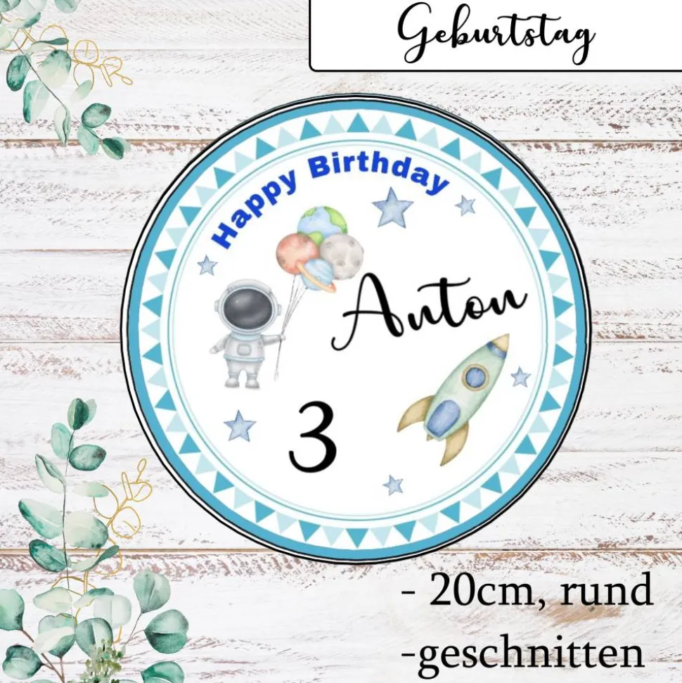 Kleine Astronauten bekommen hier ihre ganz persönliche Torte. Der essbare Tortenaufleger ist ein wunderschöner Hingucker auf Geburtstagstorten für kleine und große Weltraum Fans. Der Aufleger ist aus Esspapier und mit Lebensmittelfarbe bedruckt.