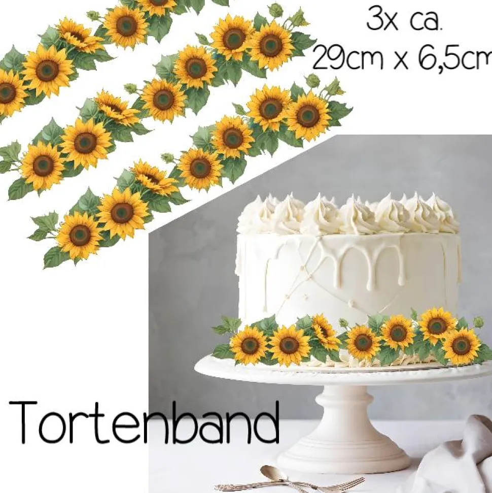 Verleihen Sie jeder Torte mit diesem tollen Tortenband mit Sonnenblumenmotiv eine herbstliche Stimmung. Das Band kann individuell zugeschnitten werden und passt somit perfekt auf jede runde oder eckige Torte.