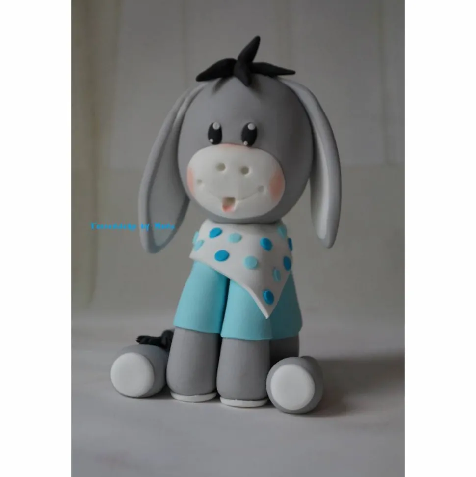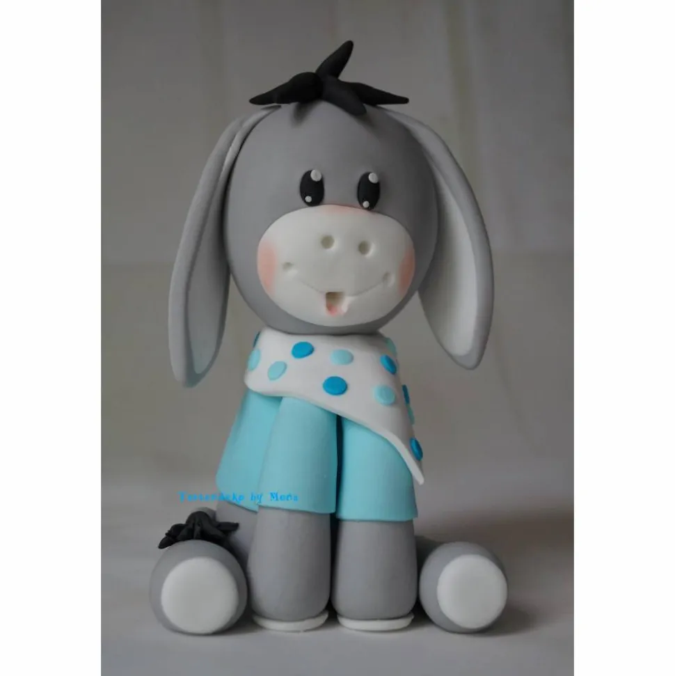 Eine Tortendeko für die Geburt, Geburtstag, Taufe ein Esel. Die Farben können auch geändert werden, damit man ihn auch für ein Mädchen nehmen kann.