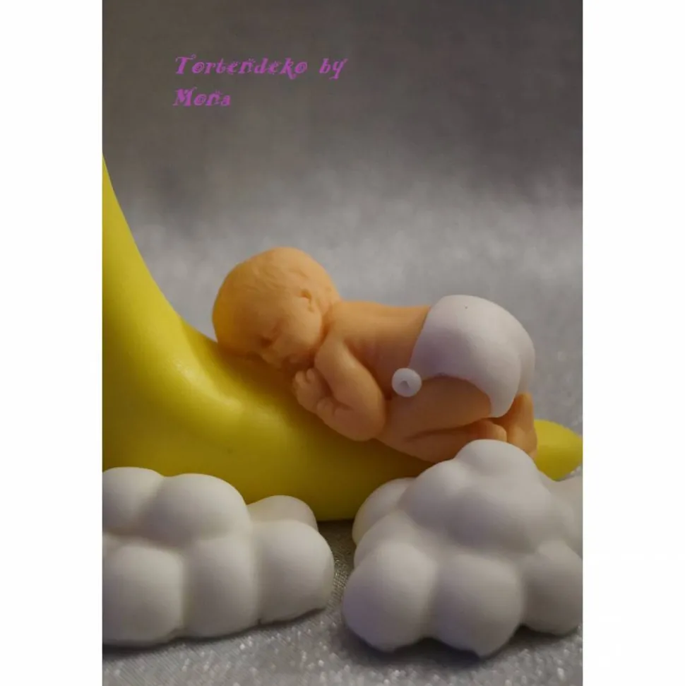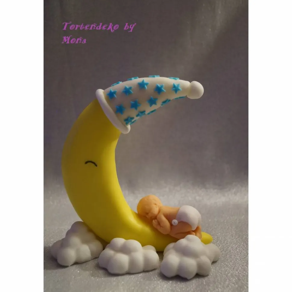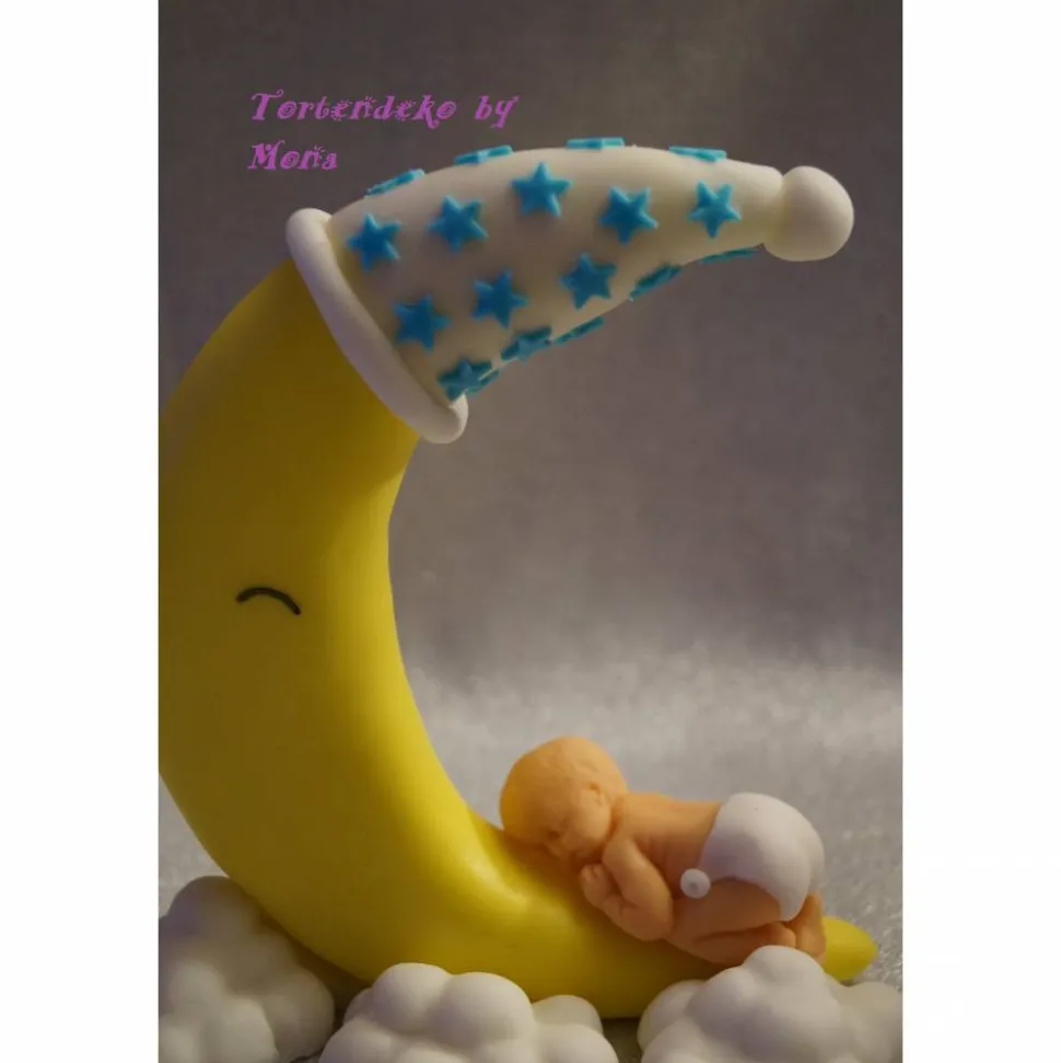 Eine Tortendeko für die Geburt, Geburtstag, Taufe ein Mond mit Baby und Würfel, alles was im Angebot zu sehen ist gehört zum Angebot.