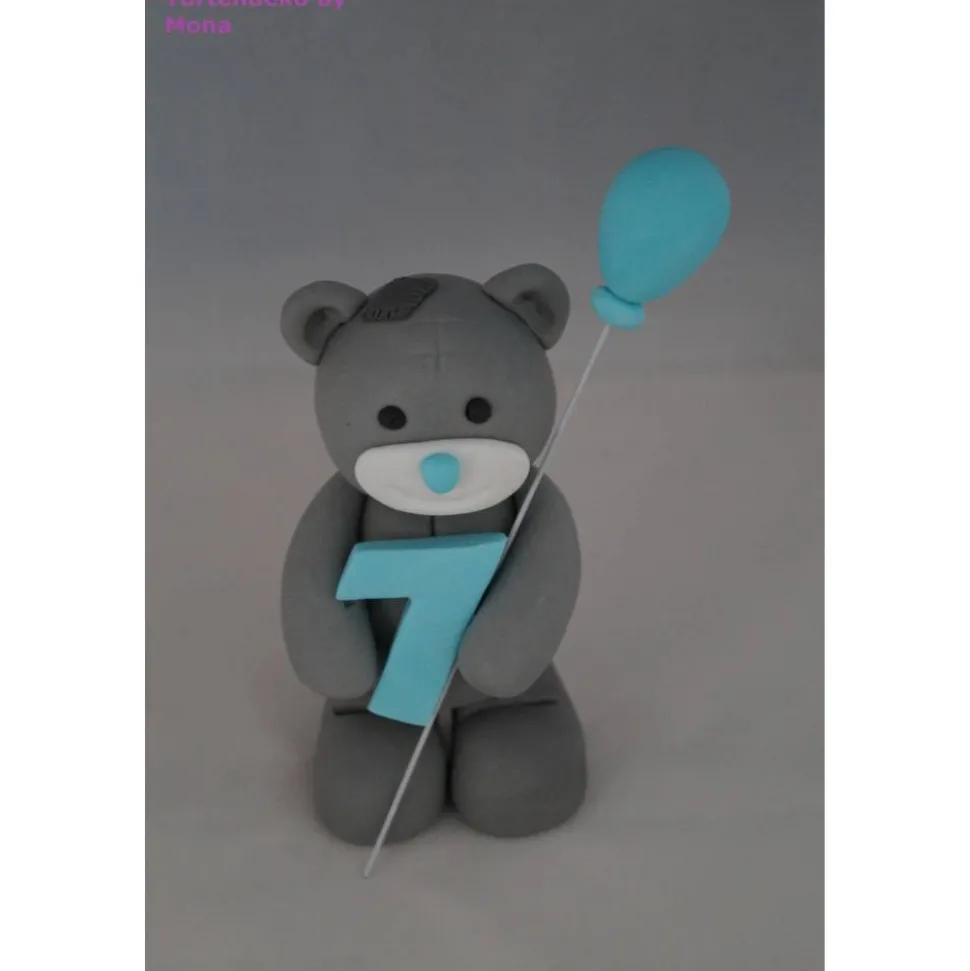 Eine Tortendeko für die Geburt, Geburtstag ein Teddy mit Ballon und die passende Zahl zum Geburtstag.