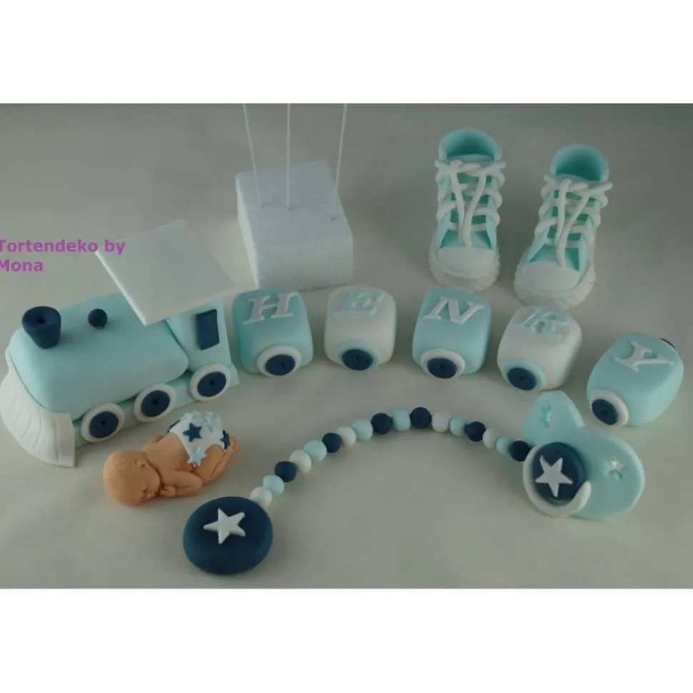 Eine Tortendeko für die Taufe, Geburt,Geburtstag,Zug mit Namen,Schuhe, Schnuller,Blumen und Ballons,der Styropor Würfel gehört nicht mit zum Angebot wo die Ballons drin stecken. Kann auch für ein Mädchen gemacht gemacht werden.