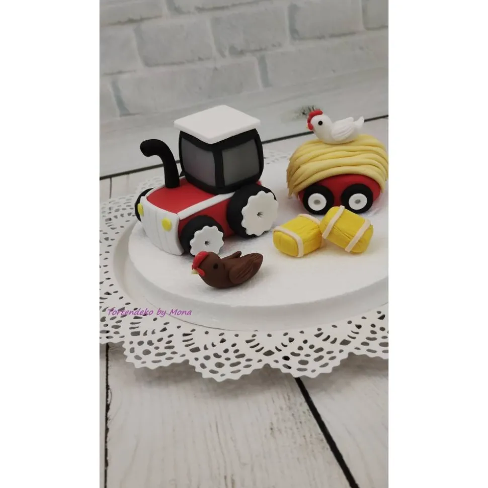 Die Figuren sind aus Fondant (Zuckermasse) mit Lebensmittelfarben hergestellt und sind durch Zugabe der Cellulose hart.
