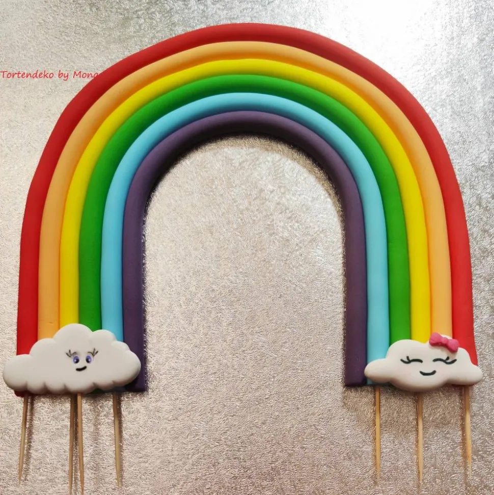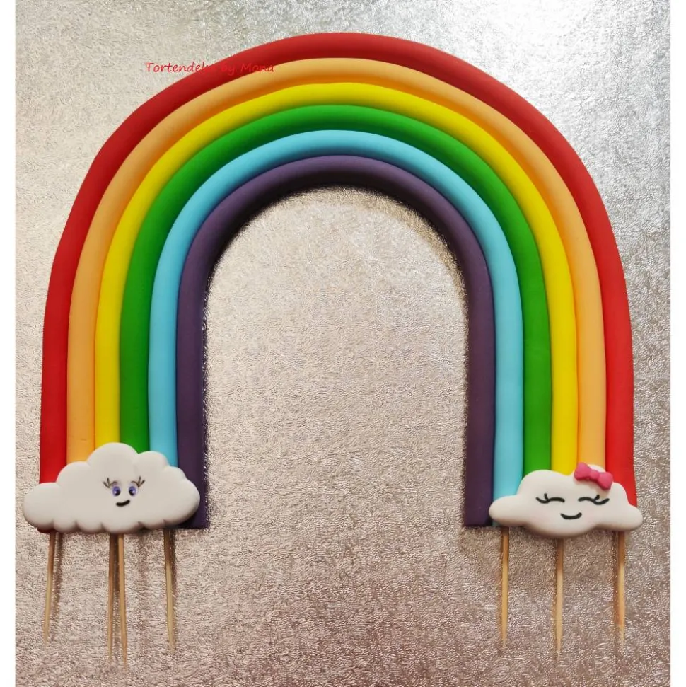 Hier bekommt ihr ein tollen Regenbogen oder Schmetterlinge für eine Tauftorte oder zum Geburtstag. Ihr könnt aus mehren Varianten wählen, entweder nur den Regenbogen, nur Schmetterlinge oder beides zusammen. Den Namen könnt ihr gerne auch dazu bekommen. Der Regenbogen ist 22,5 cm hoch und 19,5 cm breit.