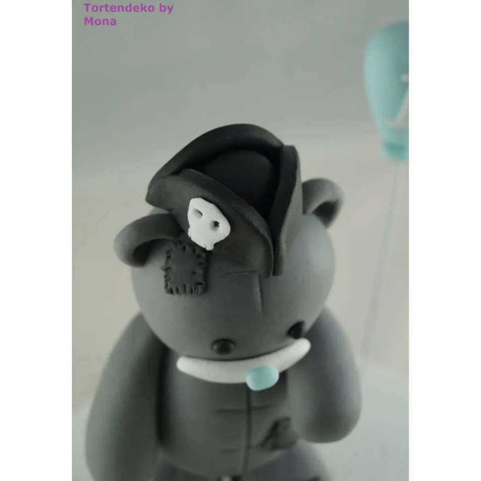 In dieser Auktion bekommt ihr eine Tortendeko für die Taufe, Geburt, Geburtstag. Hier ist ein Teddy mit Piratenhut und Ballon.