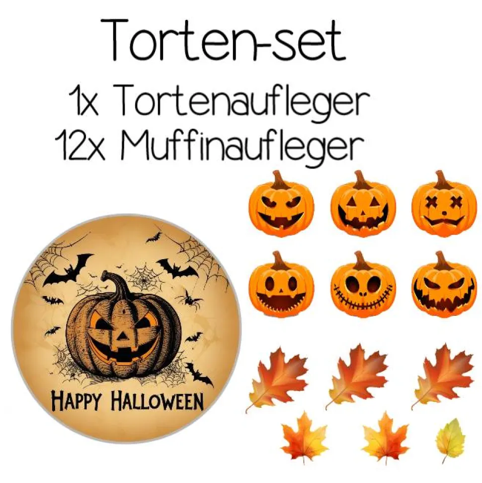 Verleihen Sie Ihren Halloween-Backkreationen mit diesem Set das gewisse Etwas! Mit einem Tortenaufleger und essbaren Dekorationen in herbstlichem Design können Sie Ihre Torten, Cupcakes und Desserts ganz individuell gestalten. Lassen Sie Ihrer Phantasie freien Lauf und machen Sie Ihre Kuchentafel zu einem echten Hingucker!