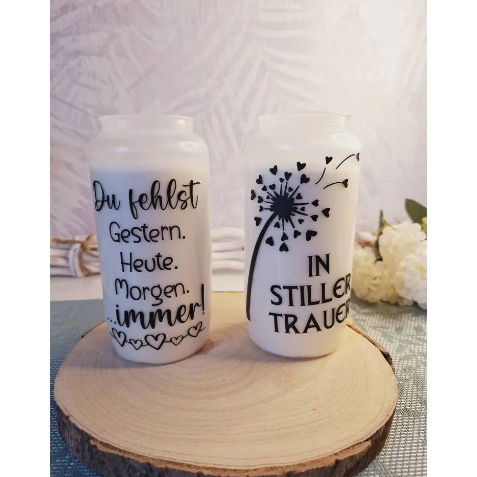 Jeder Mensch hinterlässt Spuren in unserem Herzen. Mit einer individuell gestalteten Trauerkerze kannst du diese Verbindung auf eine besondere Weise bewahren.