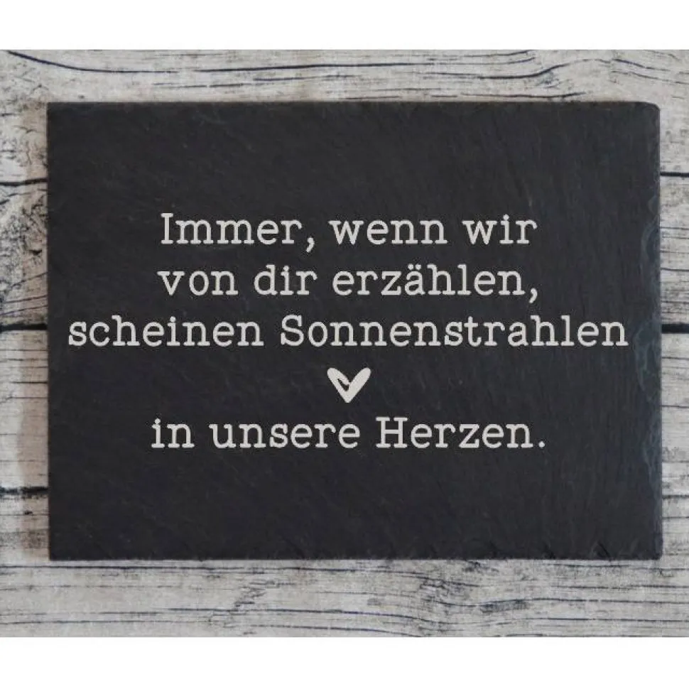 Sie möchten auf besondere Art und Weise an einen lieben Menschen erinnern, den Sie verloren haben? Mein Grabschild mit Gravur macht genau das für Sie möglich. Das Grabschild kann ergänzend zu einem Grabstein oder Kreuz aufgestellt werden. Es wird aus reinem Schiefer hergestellt, ist ausgesprochen robust und kann damit bedenkenlos auf Dauer im Freien eingesetzt werden.