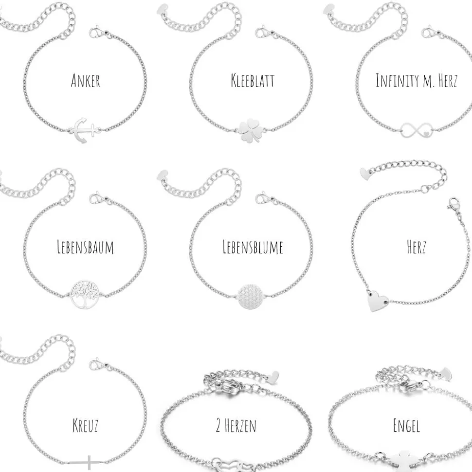 Dieses einzigartige Armband mit einem Symbol deiner Wahl wird deiner Freundin ein strahlendes Lächeln auf die Lippen zaubern. Die Kombination aus hochwertigen Edelstahl Elementen in der Farbe Silber, Gold oder Rosegold machen das Armband zu einem sehr besonderen Geschenk für die Trauzeugin.