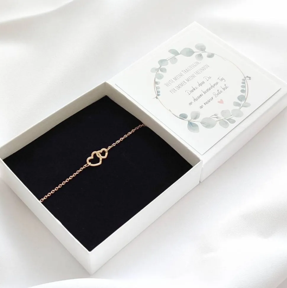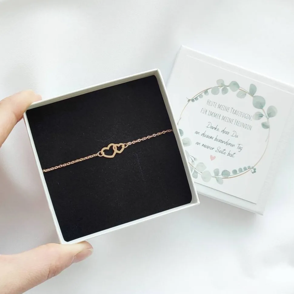 Du suchst das perfekte Trauzeugin Geschenk? Überrasche deine Trauzeugin mit einem einzigartigen Armband mit Herz, das auf der Karte „Heute meine Trauzeugin, für immer meine Freundin“ präsentiert wird.