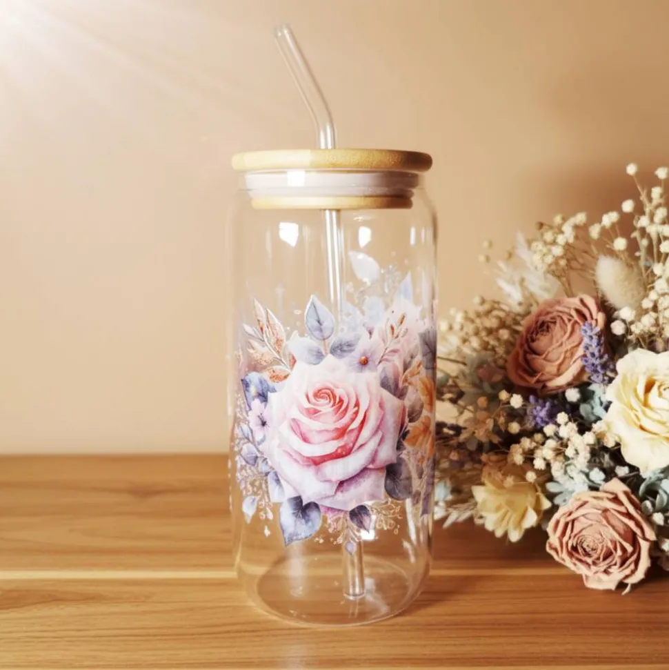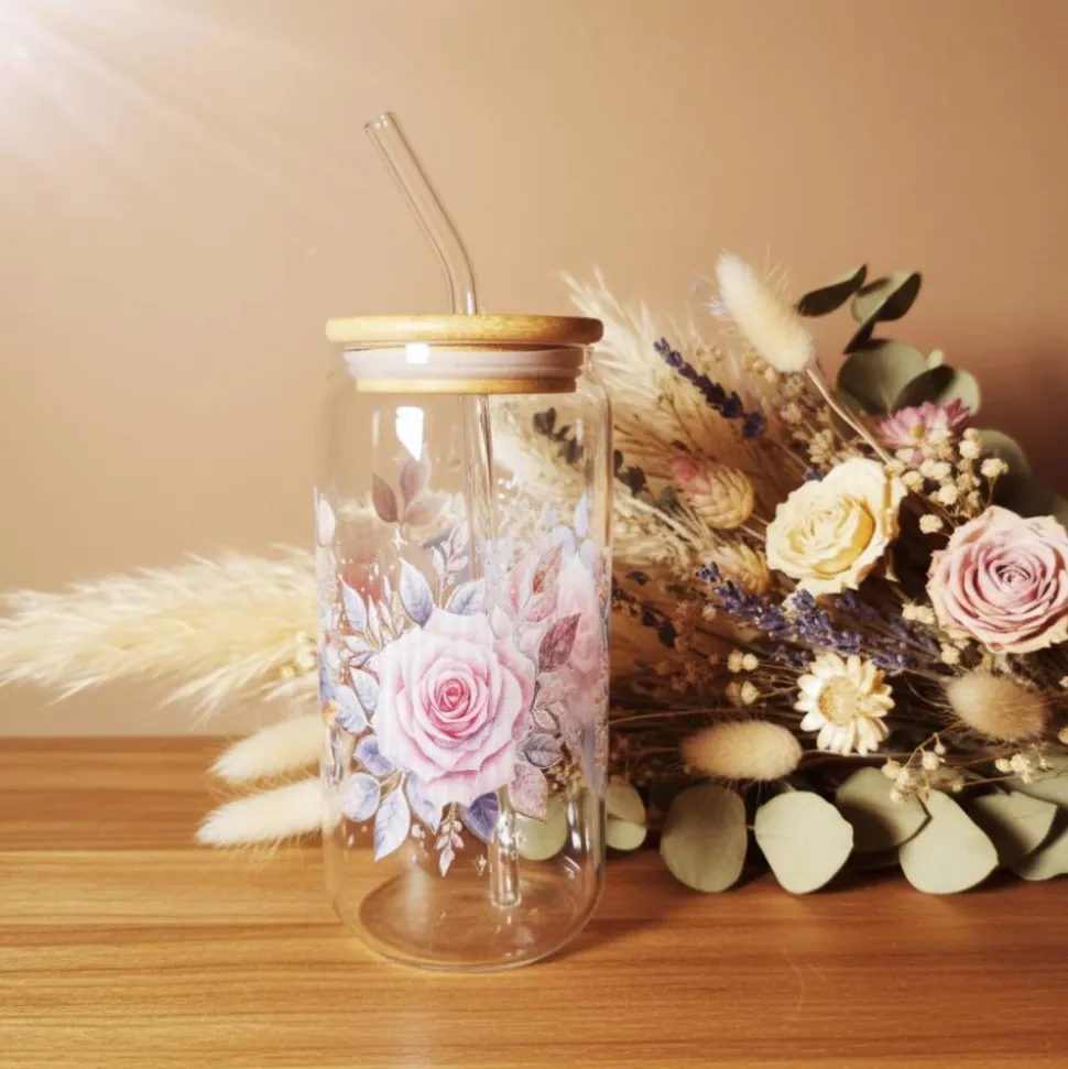 Das Glas hat ein Fassungsvermögen von 470ml und es wird mit einem Glasstrohhalm, Bambusdeckel und einer Bürste zum reinigen des Strohhalm geliefert.
