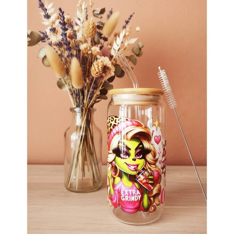 Das Glas hat ein Fassungsvermögen von 470ml und es wird mit einem Glasstrohhalm, Bambusdeckel und einer Bürste zum reinigen des Strohhalm geliefert.