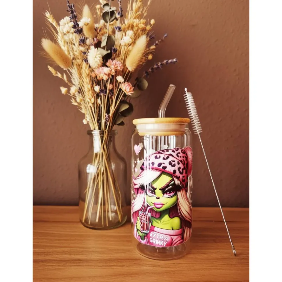 Das Glas hat ein Fassungsvermögen von 470ml und es wird mit einem Glasstrohhalm, Bambusdeckel und einer Bürste zum reinigen des Strohhalm geliefert.