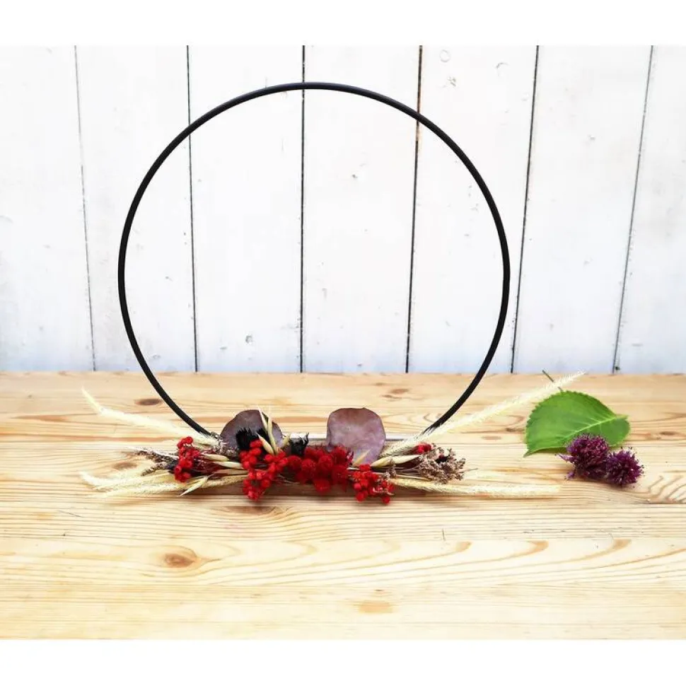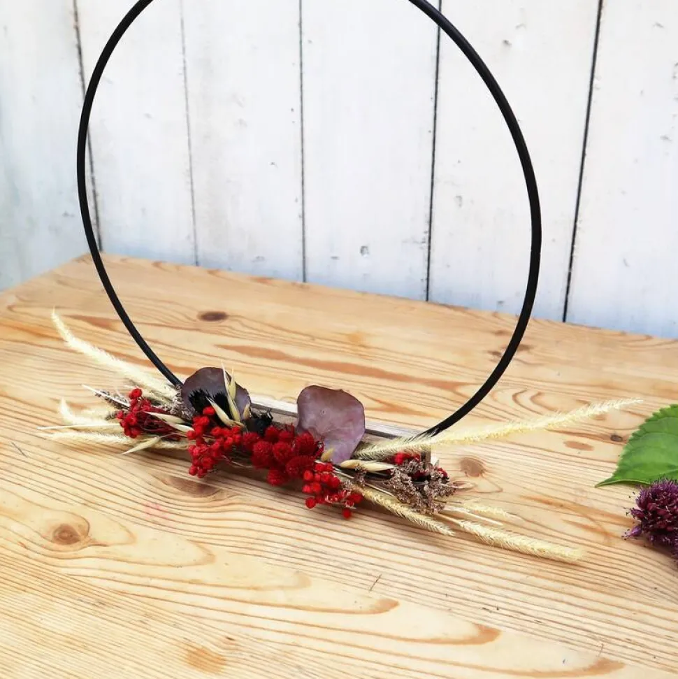 Material: Metallreifen, Trockenblumen, Holz