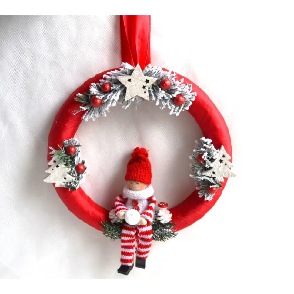 Tür-/Wandkranz rot-weiß mit Weihnachtspüppchen