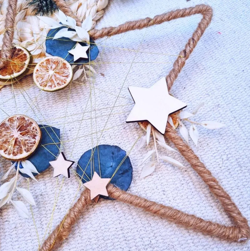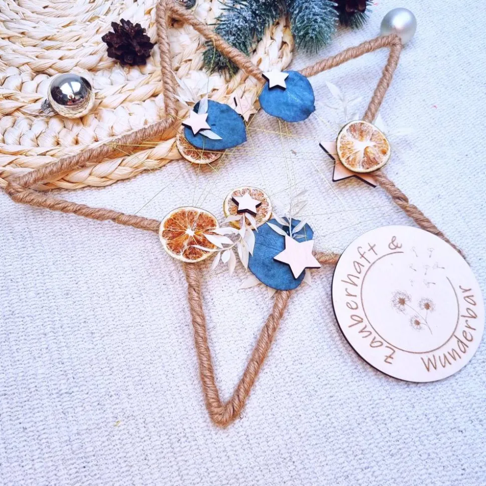 Unser sternförmiger Türkranz aus Trockenblumen ist die ideale Wahl für deine Weihnachtsdeko 2024 und Winter-Fensterdeko. In liebevoller Handarbeit gefertigt, fügt dieser Adventskranz deinem Zuhause eine zauberhafte, winterliche Atmosphäre hinzu. Die Mischung aus natürlichen, getrockneten Blumen und winterlichen Elementen macht diesen Kranz zu einem Blickfang an jeder Tür oder jedem Fenster.