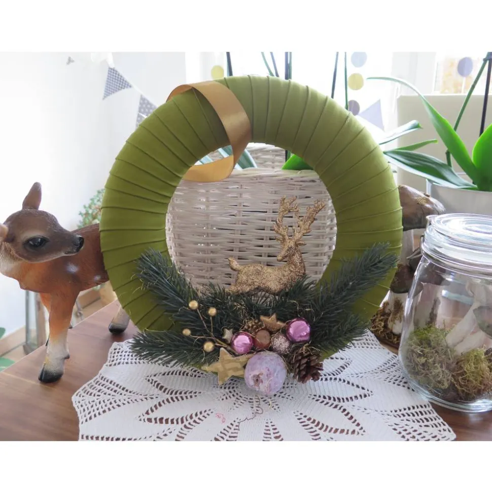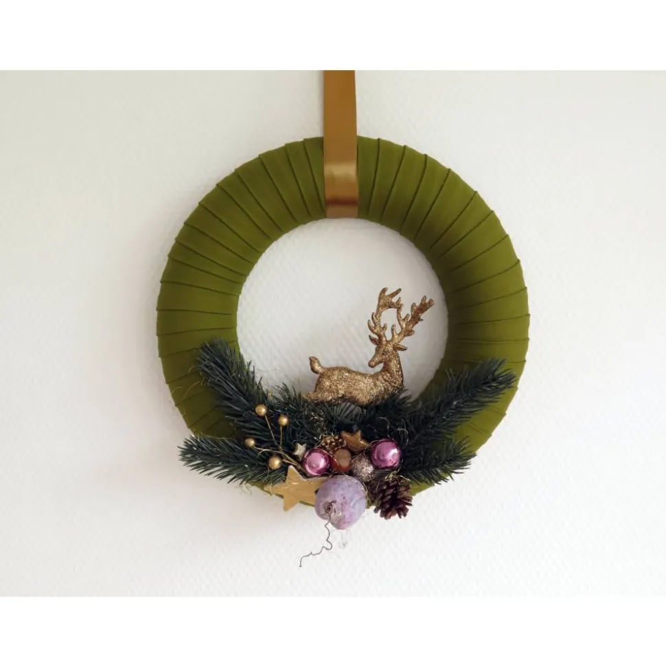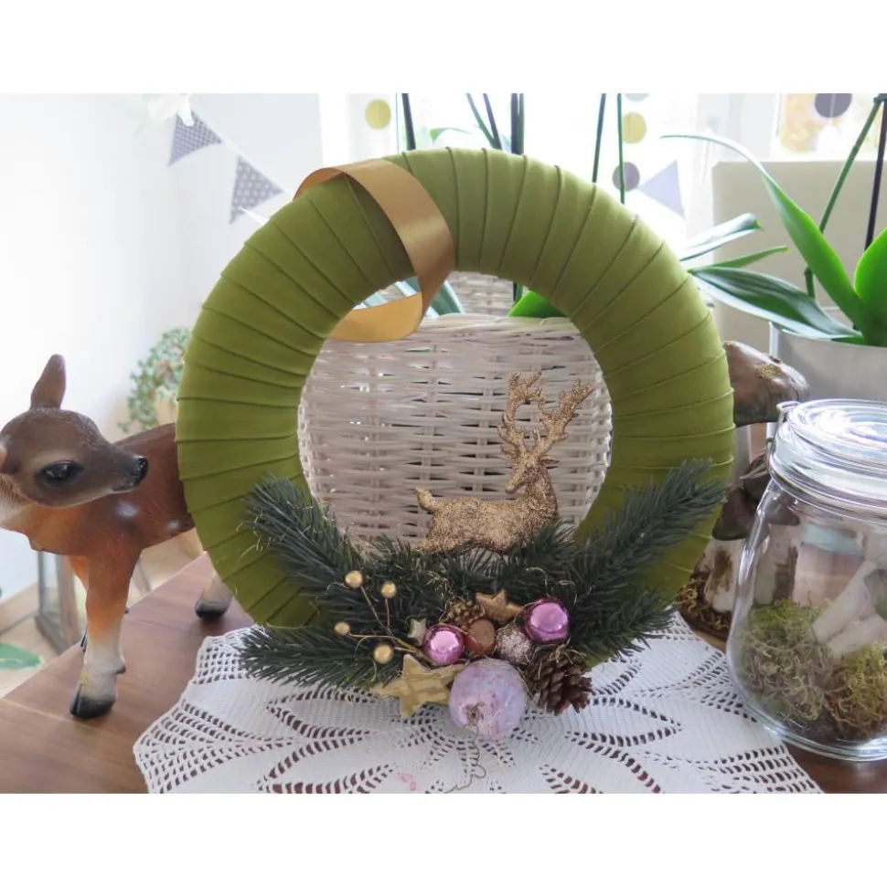 … mit grünem Stoff umwickelter Styropor-Halbkranz (Durchmesser 30 cm)