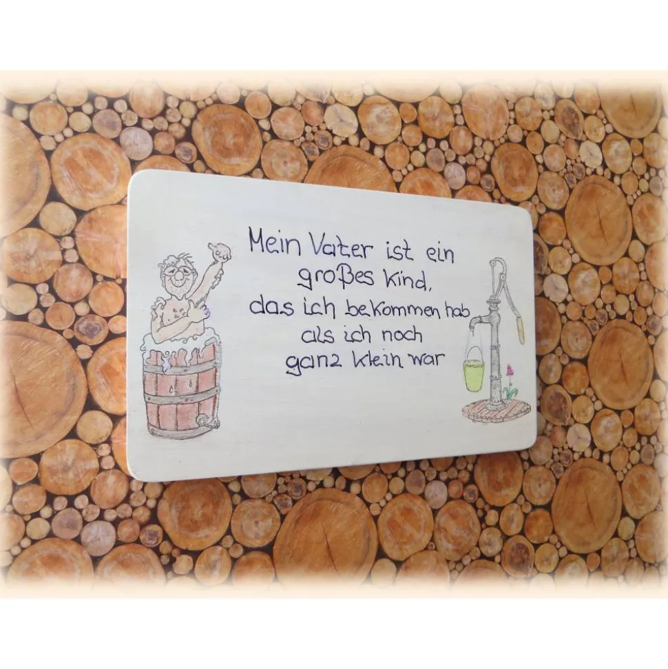 Hier sehen sie einen tolle Türschild, Wandbild mit einem tollen Spruch für Väter, die im Herzen jung geblieben sind… Sicher lässt sich solch eine Schild auch passend für den Opa gestalten und beschriften. Das bedarf natürlich auch etwas Zeit, die zu beachten ist.