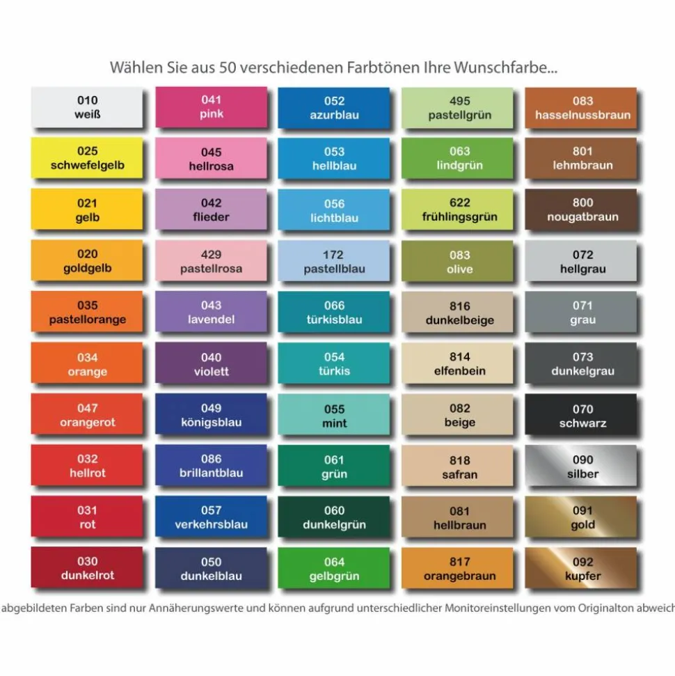 Geben Sie bitte bei der Bestellung Ihren Farbwunsch mit an.