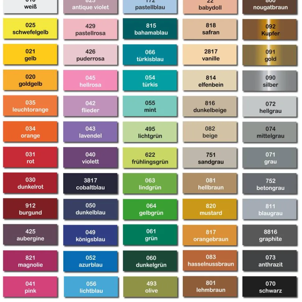 Dazu wählen Sie bitte die entsprechende Farbnummern aus der Farbkarte.