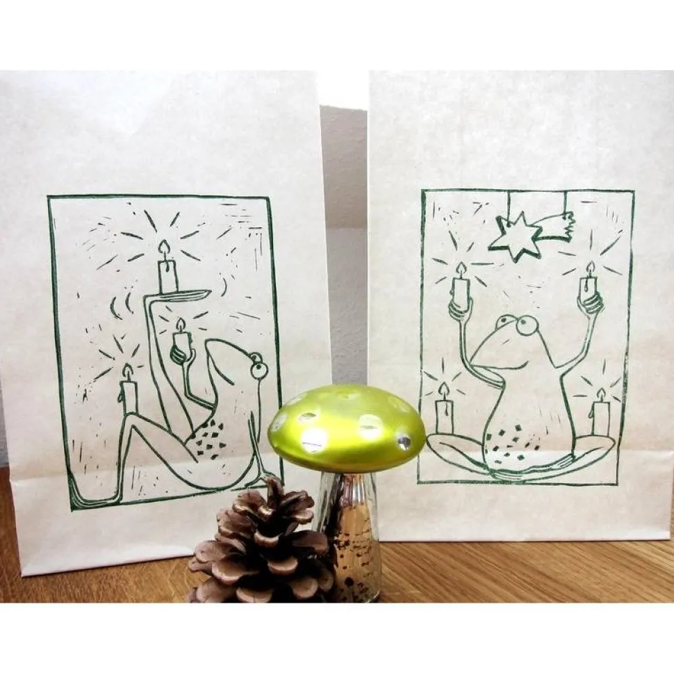 Für die 4 Adventsmotive habe ich Linolschnitte angefertigt und die Tüten von Hand bedruckt.