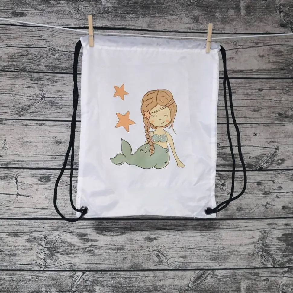 Der Zugbeutel ist weiß und wurde von mir bedruckt. Er besteht aus 100% Polyester und kann gewaschen werden. Er hat ein Fassungsvermögen von ca. 12 Ltr.