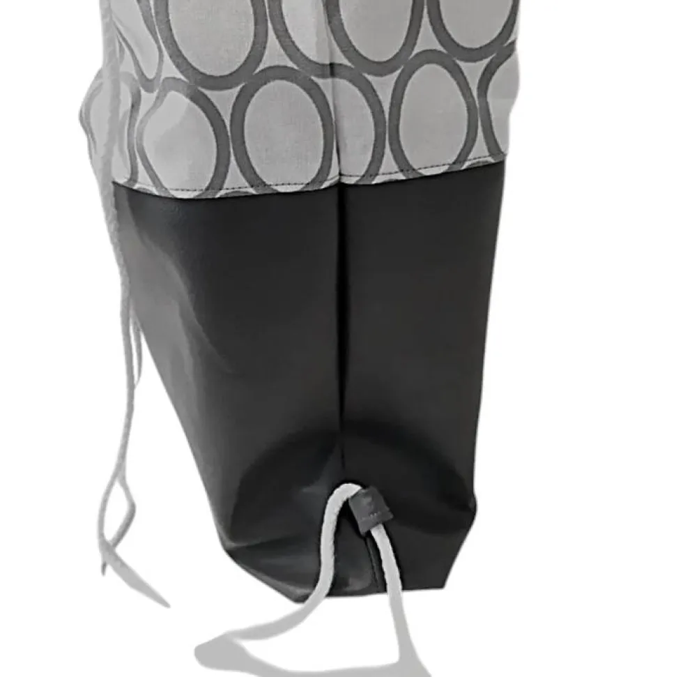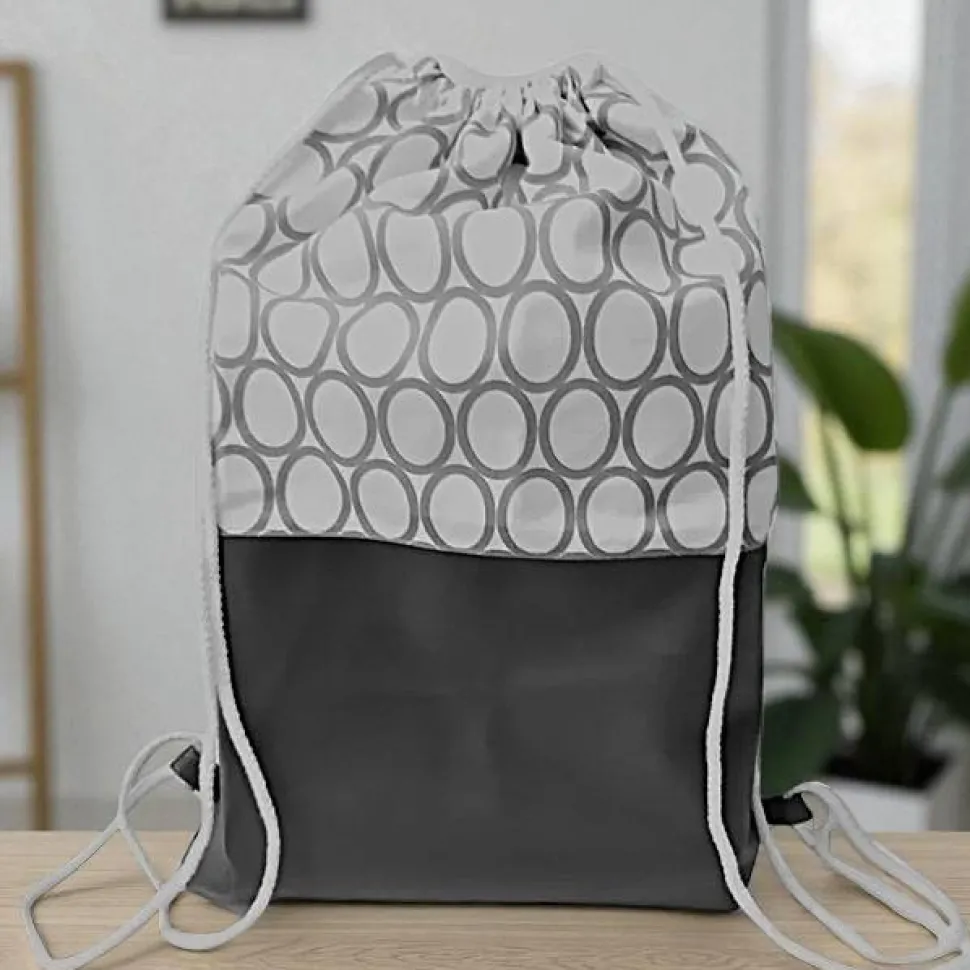 Super geeignet als Rucksack oder Festivaltasche, da er aus einem Robustem Kunstleder und einem festen Baumwollstoff besteht. Am Boden ist der Turnbeutel mit 6cm abgenäht und verleiht der Tasche so mehr Stand.