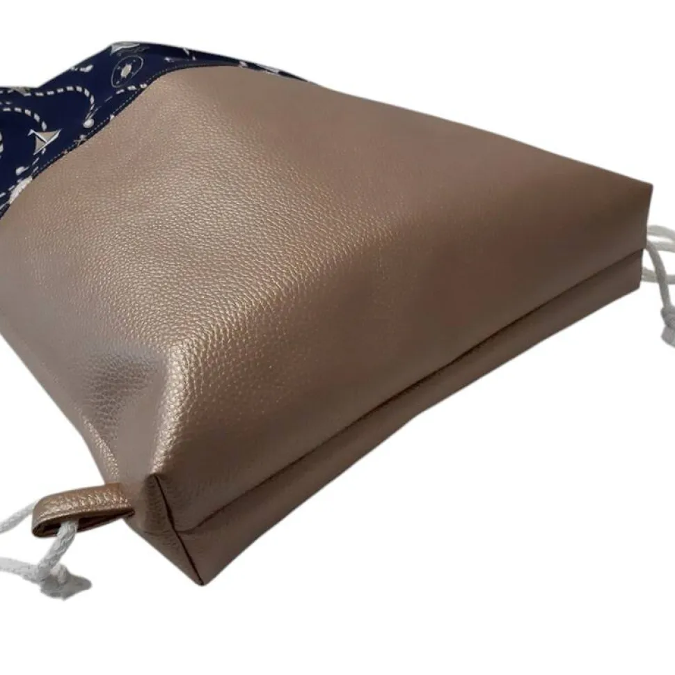 Super geeignet als Rucksack oder Festivaltasche, da er aus einem Robustem Kunstleder und einem festen Baumwollstoff besteht. Am Boden ist der Turnbeutel mit 6cm abgenäht und verleiht der Tasche so mehr Stand.