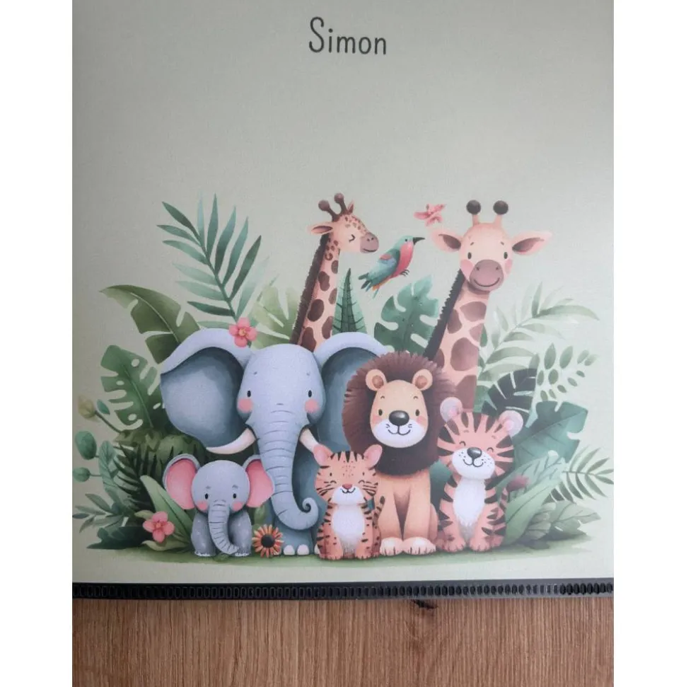 Das niedliche Dschungeldesign mit den gedeckten Farben spiegelt die Magie dieser ganz besonderen Zeit der Schwangerschaft wieder. Durch die Personalisierungsmöglichkeit wird es dein ganz persönliches Unikat.