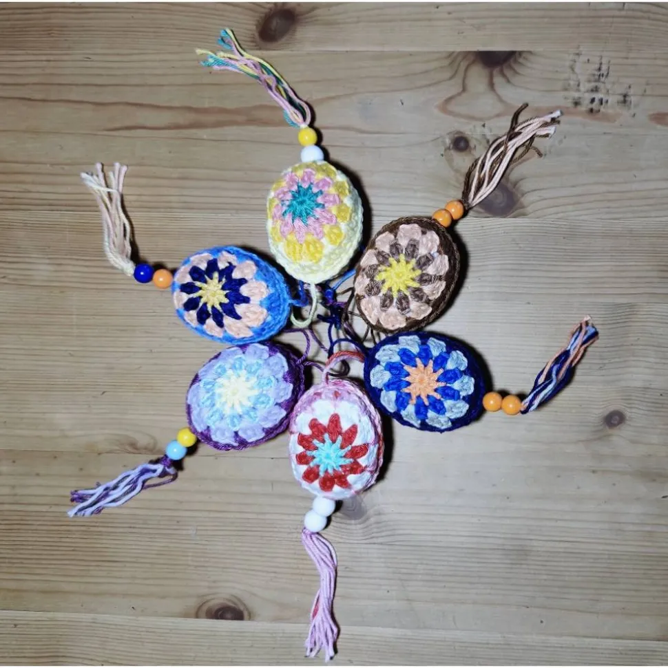 jedes gehäkelte Osterei wurde aus verschiedenen Farben gehäkelt, jedes Ei eine andere Farbkombination und somit einzigartig