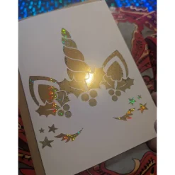 „Unicorn“ Weihnachtskarte, aufklappbar mit Umschlag | handgemalt oder foliert