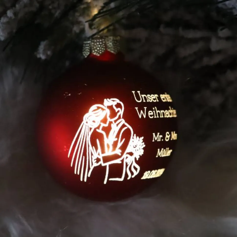 ✔ Gravur: Brautpaar + „Unser erstes Weihnachten“ + Wunschnamen & Hochzeitsdatum
