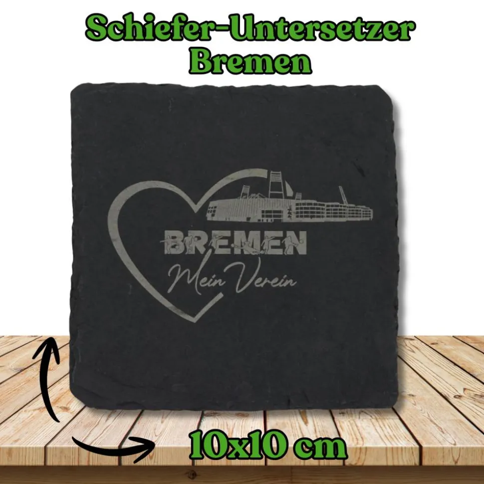 Entdecke den einzigartigen Fußball-Untersetzer mit dem Stadium deines Vereins aus Schiefer – perfekt für echte Fußball-Freunde! Jeder Untersetzer wird hochwertig per Lasergravur veredelt und anschließend versiegelt, damit du lange Freude daran hast.