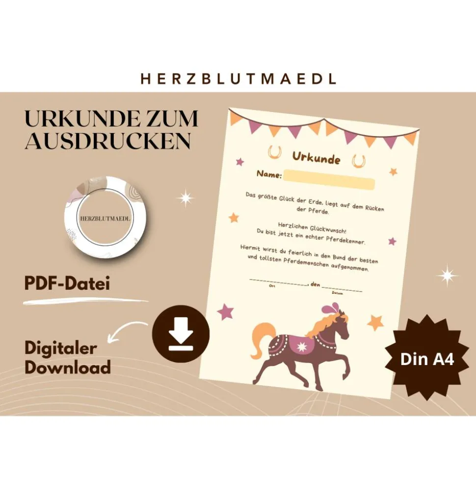 Für eine persönliche Note bieten wir dir die Möglichkeit, deine eigene Botschaft oder Widmung auf der Urkunde zu verewigen. Gegen einen geringen Aufpreis von nur 5 Euro kannst du deinen individuellen Text hinzufügen lassen, sei es eine herzliche Glückwunschnachricht, ein inspirierendes Zitat oder ein spezielles Datum. Dieses Angebot ist exklusiv in unserem Shop verfügbar, um sicherzustellen, dass dein Mitgebsel noch persönlicher wird. Lege einfach meinen Artikel „Urkunde mit Wunschtext“ zusätzlich in deinen Warenkorb und hinterlasse uns deine gewünschte Nachricht. Wir kümmern uns dann um den Rest, damit der Kindergeburtstag für immer unvergesslich bleibt.