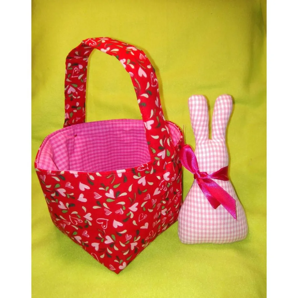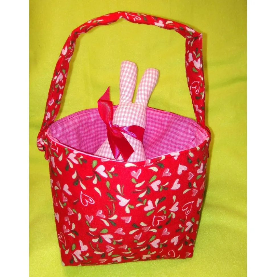 Jetzt kann der Osterhase kommen: Oster-Körbchen aus gemusterten Baumwollstoffen mit Henkel.