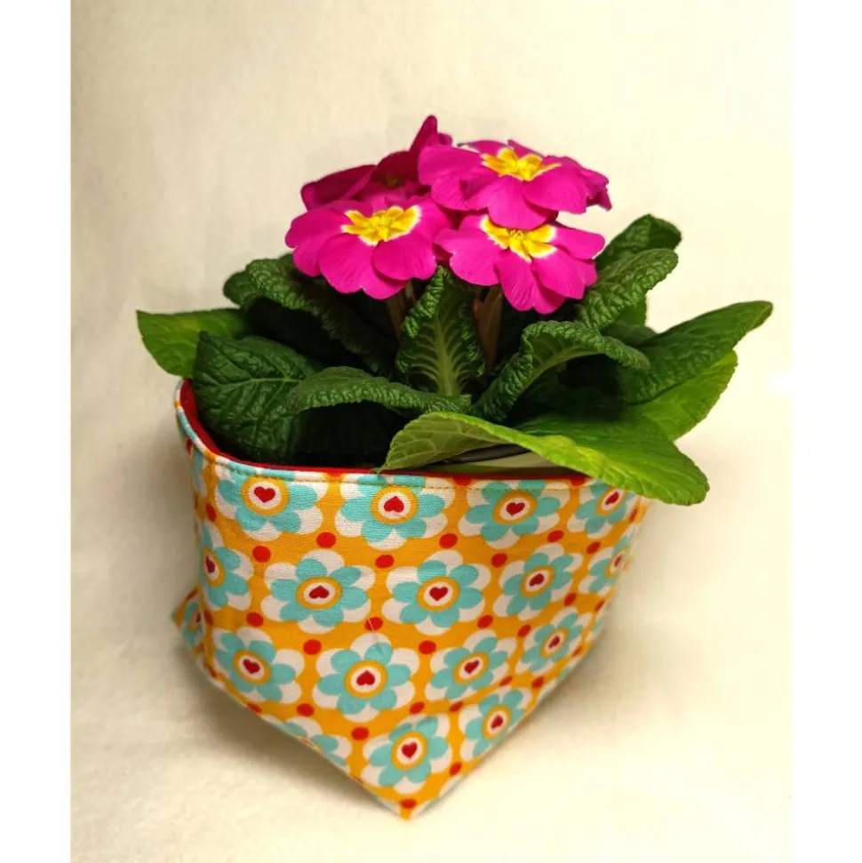 Jetzt kann der Osterhase kommen: Oster-Körbchen aus gemusterten Baumwollstoffen mit Henkel.