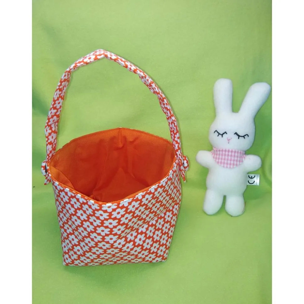 Jetzt kann der Osterhase kommen: Oster-Körbchen aus gemusterten Baumwollstoffen mit Henkel.
