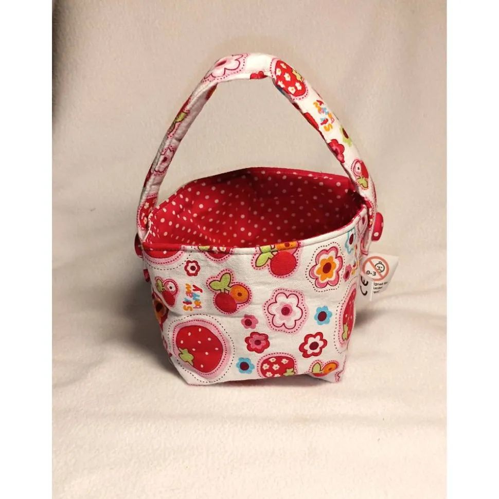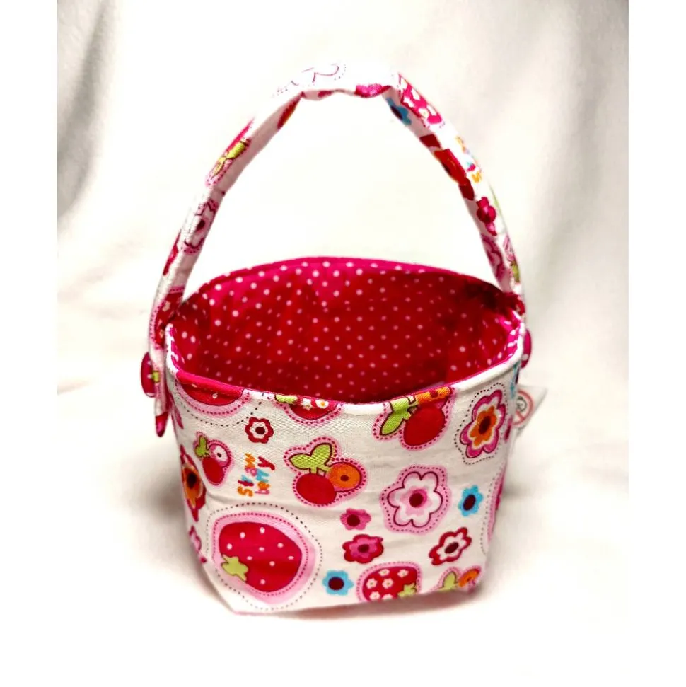 Jetzt kann der Osterhase kommen: Oster-Körbchen aus gemusterten Baumwollstoffen mit Henkel.