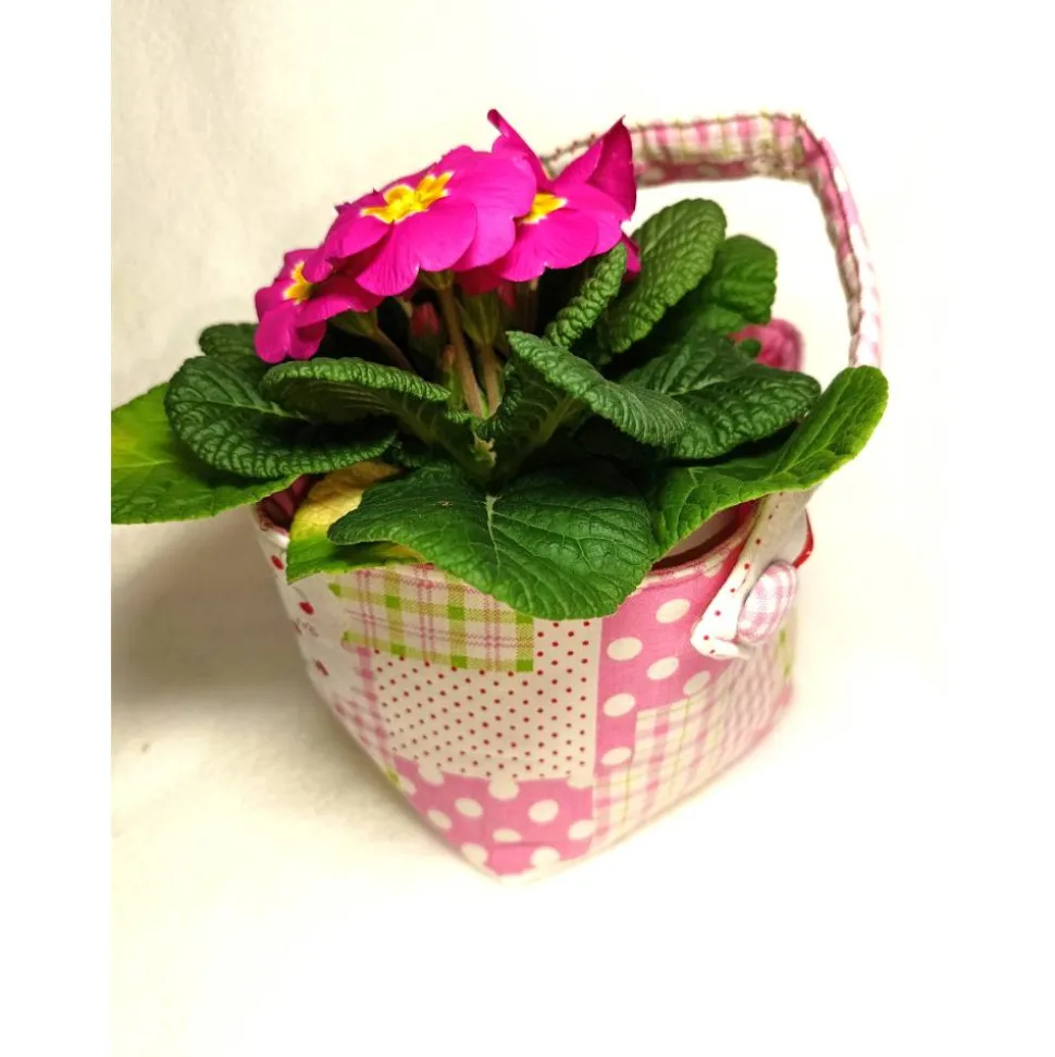 Jetzt kann der Osterhase kommen: Oster-Körbchen aus gemusterten Baumwollstoffen mit Henkel.