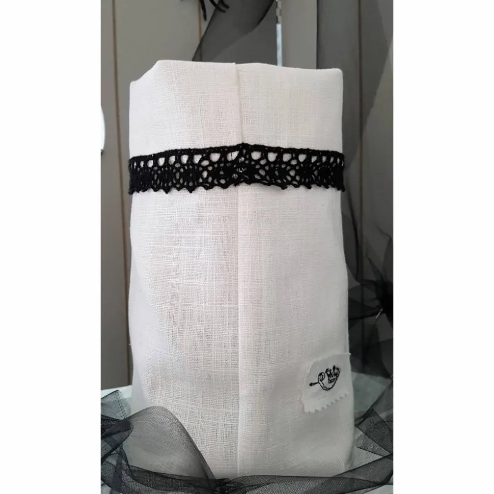 Aus 100% Leinen und mit Baumwollspitze veredelt sieht das Säckchen auch unbeleuchtet toll aus.
