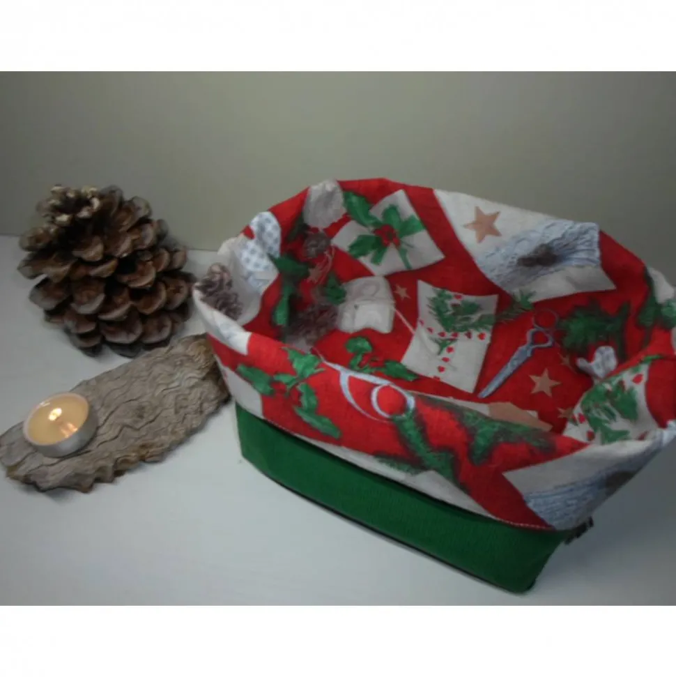 Man kann das Körbchen für Nüsse, Obst, Süßigkeiten, Brötchenkorb oder andere Kleinteile verwenden. Wird es nach Weihnachten nicht mehr gebraucht, lässt es sich flach zusammen legen und mit den Tischdecken verstauen.